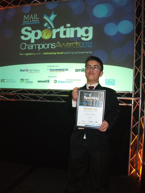 for being named runner up in the Disabled Athlete of the Year Award, at the Hull Daily Mail SPORTING CHAMPIONS AWARDS at the KC Stadium on Thursday 8th November.