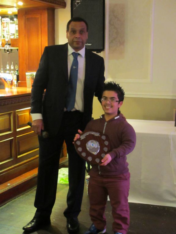 Joseph Johnson Student Of The Year Leven receiving The Caroline Crossley Memorial Shield from Adam Crossley